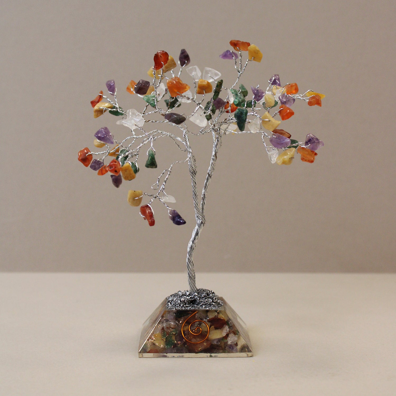 Arbre à pierres précieuses avec base en orgonite - Multi-pierres - 3 tailles