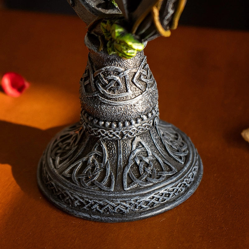 Élancé et élégant, il crée une atmosphère mystique et apaisante lorsqu’il est illuminé par une flamme. Les motifs végétaux rappellent l’ancrage à la Terre et les cycles naturels, faisant de ce bougeoir un objet idéal pour les rituels, la méditation ou une décoration ésotérique pleine de sens.
