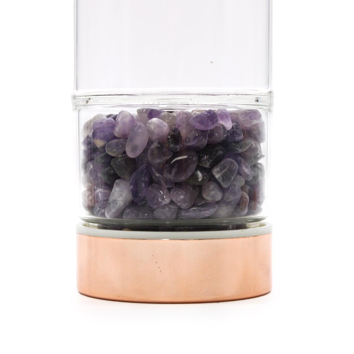 Bouteille infuseur à thé en verre de cristal - Or rose - Améthyste