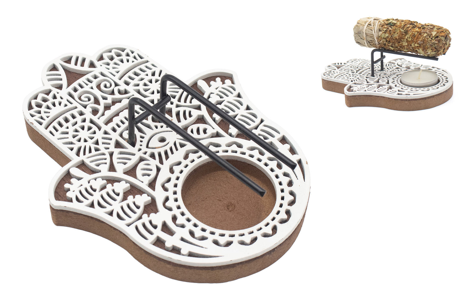 "Main de Fatma Sacrée – Brûleur 2-en-1 Sauge & Bougie"