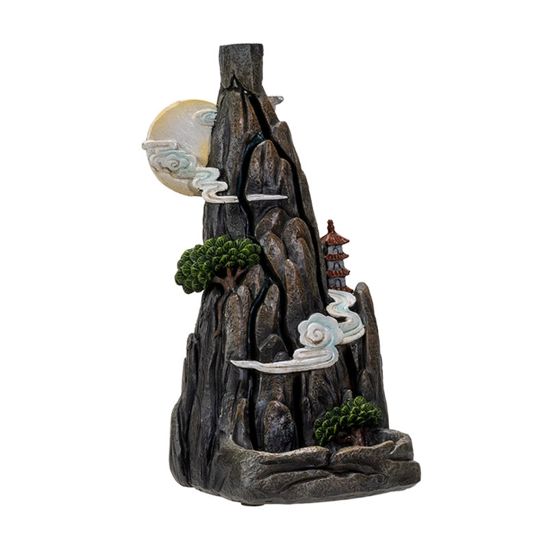 Réalisé en résine coulée à froid, ce brûleur séduit par la finesse de ses détails : reliefs minéraux, arbres miniatures et architecture traditionnelle, pour une ambiance sereine et méditative. Une fois l’encens à reflux allumé, la fumée descend en douceur le long de la montagne, transformant votre espace en un havre de calme et de relaxation.