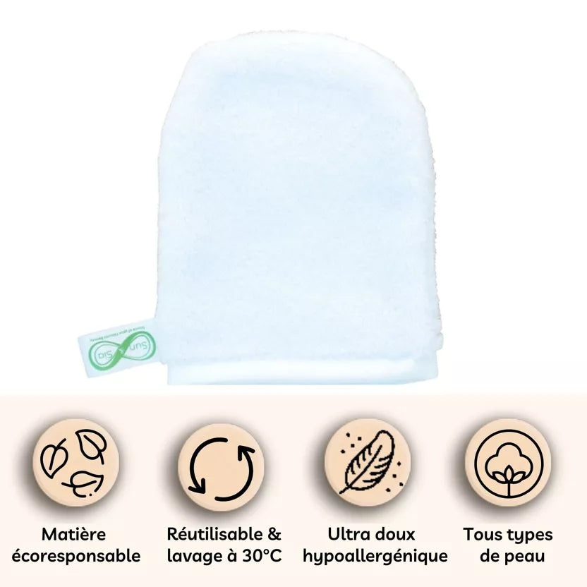 Gant démaquillant microfibre ultra doux hypoallergénique - Tous types de peaux