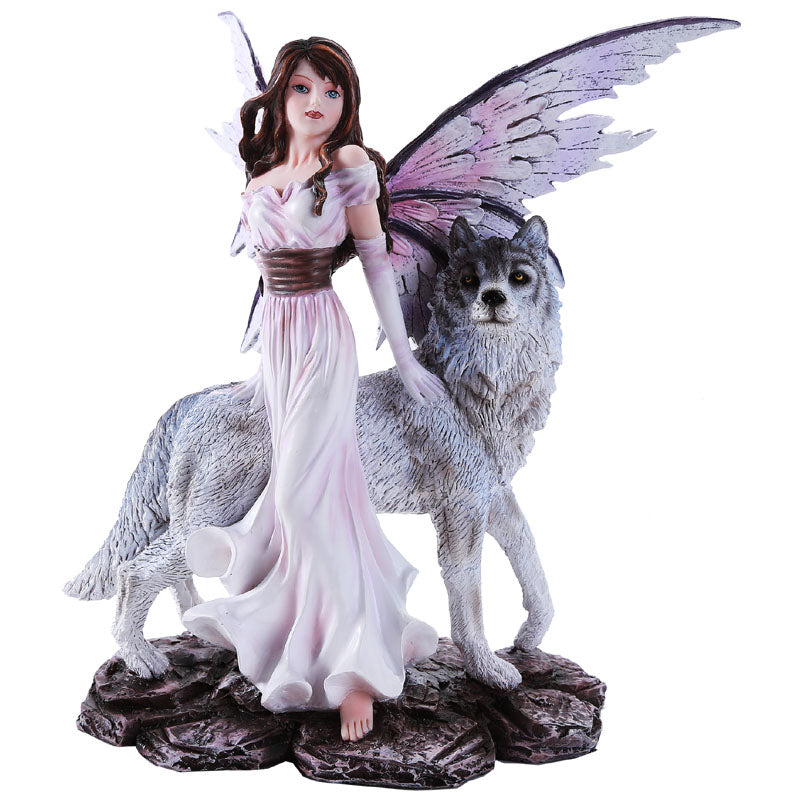 La fée avec loup - Âme Sauvage - Fée de liberté & d'instinct (18 x 14 x 27 cm)