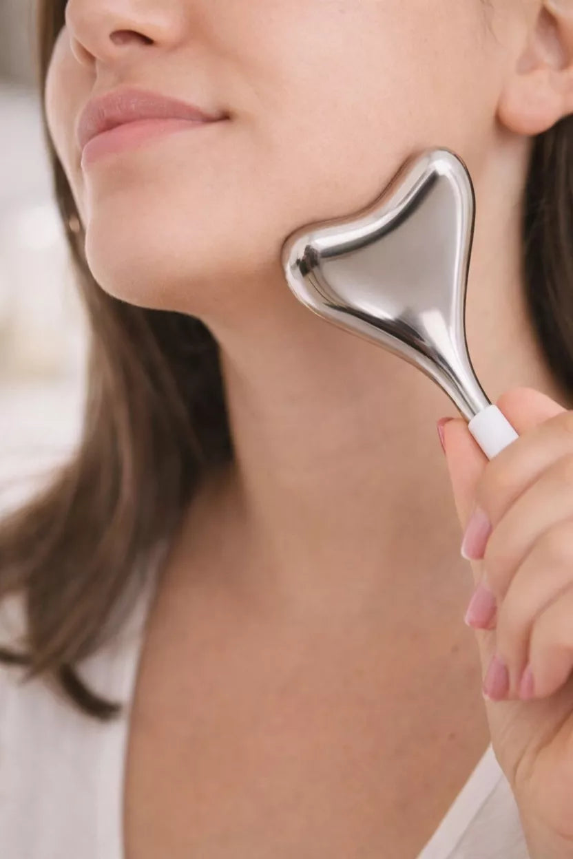 Il est conçu en acier inoxydable, exempt de substances chimiques nocives. Sa forme ergonomique épouse harmonieusement les contours du visage et du cou, inspirée par la tradition asiatique du massage à la cuillère, également connu sous le nom de GUA SHA. Cette technique utilise des mouvements de friction pour stimuler la circulation sanguine et favoriser le drainage lymphatique.