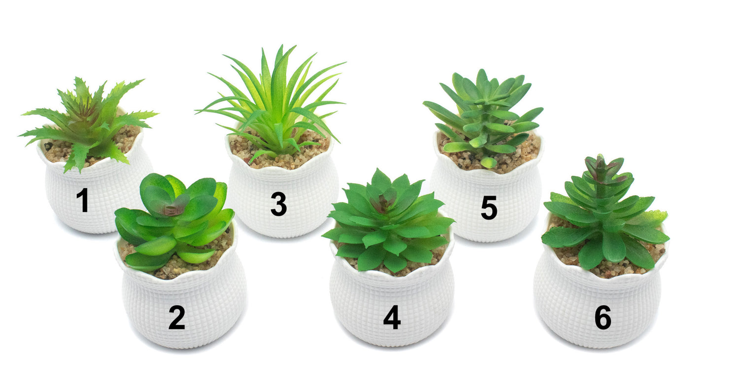 Mini plantes en pot blanc texturé - Élégance & nature sans entretien - 5,5 x 8 cm