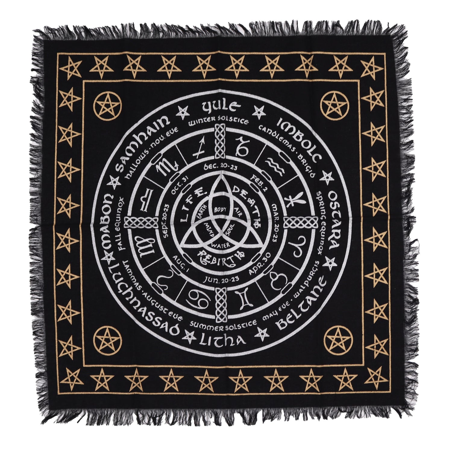 Nappe d'autel ésotérique à franges - Vie, Mort, Renaissance