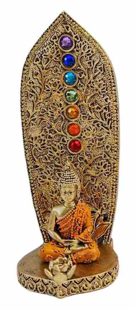 Ce porte-encens Bouddha en résine se distingue par son design plus élancé et fin, avec un décor arrière richement sculpté de motifs végétaux et ornementaux. Le Bouddha, représenté en posture de méditation, repose sur une base stable et harmonieuse, invitant au calme et au recentrage.