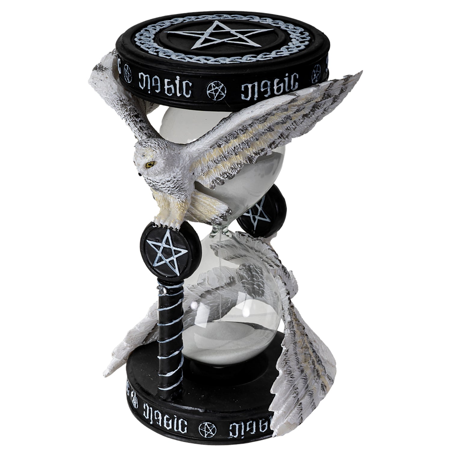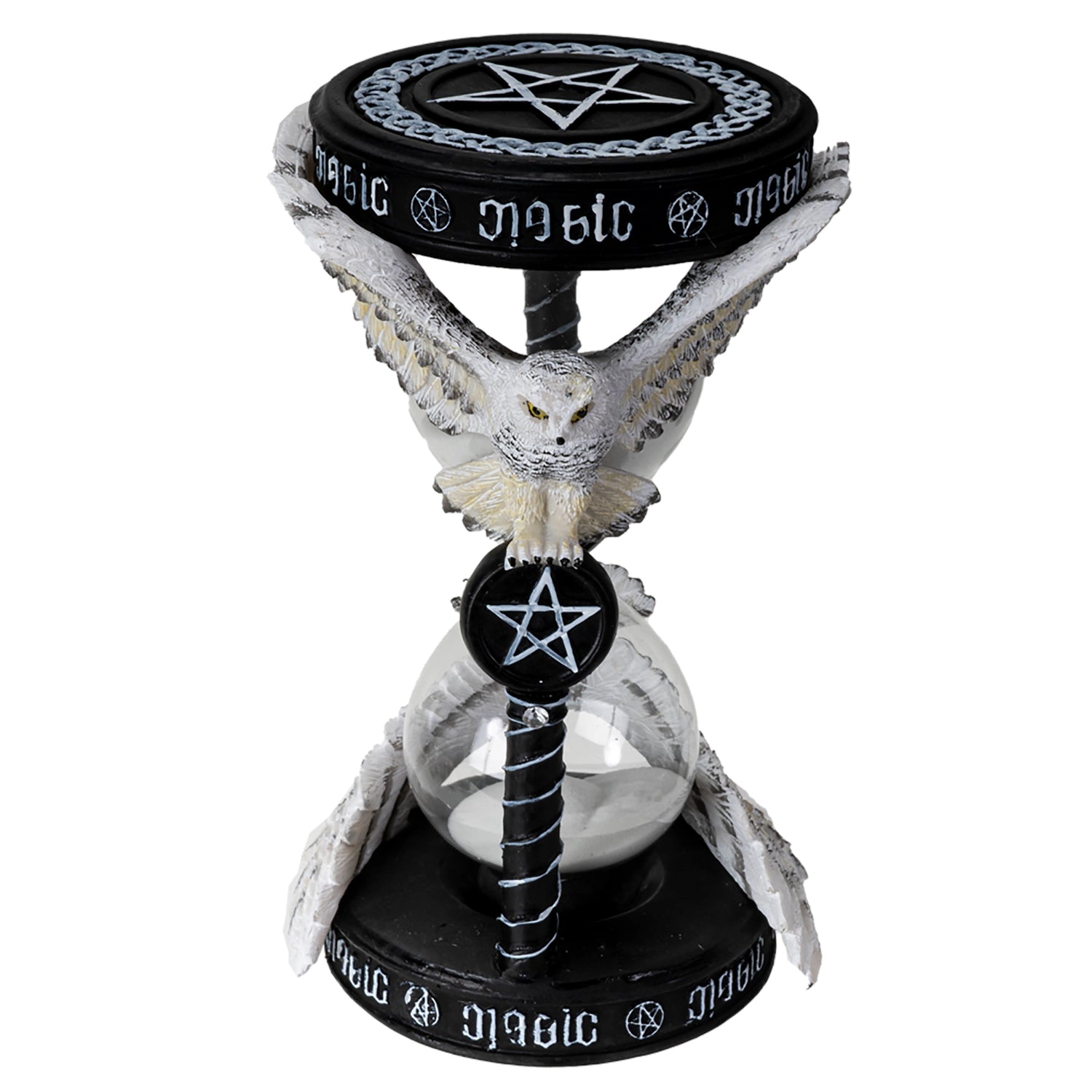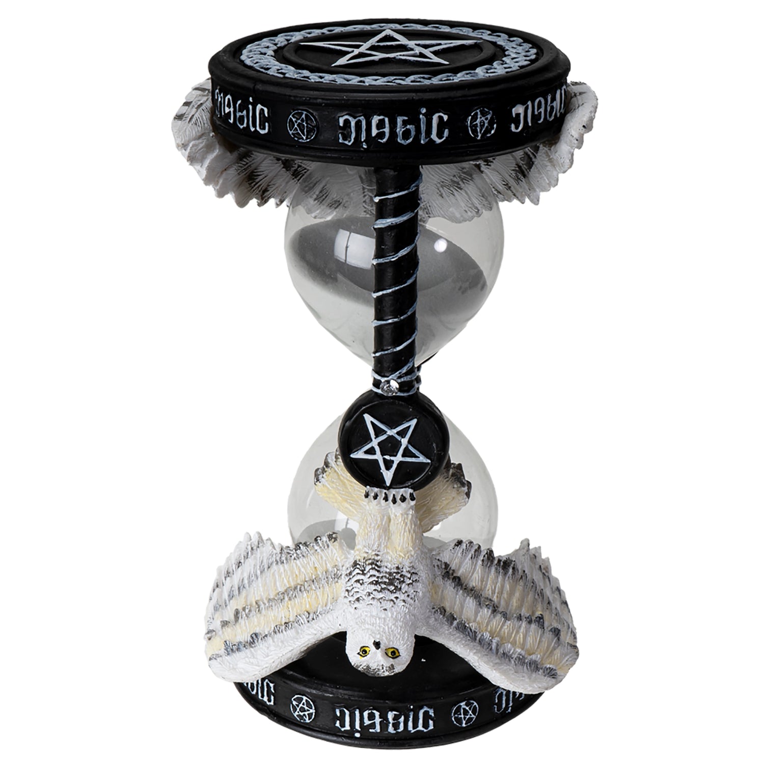 Ce sablier magique décoré d’un hibou incarne la sagesse ancestrale, la vigilance et le passage du temps sacré. Symbole de connaissance occulte et de clairvoyance, le hibou veille ici sur l’écoulement du sable, rappelant que chaque instant possède sa propre énergie.