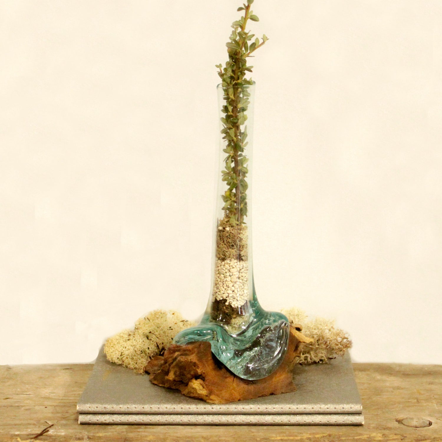 Les Verres fondus artisanalement soufflés sur Bois sont probablement le plus grand phénomène provenant de Bali depuis des années. En Hollande, déjà, il y a une tendance importante. Tout ce qui se rapporte aux plantes d'intérieur est une tendance majeure, et ce produit est magnifique.